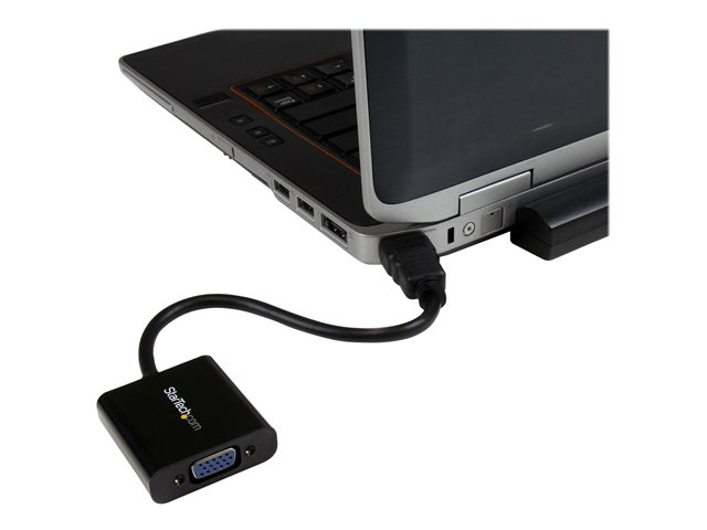 The HD2VGAE2 HDMI to VGA adapter allows you to connect an HDMI output from your laptop, ultrabook, or desktop computer onto a VGA monitor or projector, saving the cost of upgrading to an HDMI compatible display. Intended for outputting user generated content such as presentations, and work documents, the HDMI to VGA converter can also work to increase your productivity by extending your computer's desktop onto a secondary monitor, doubling available workspace.