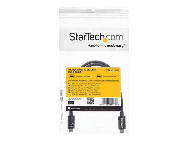 StarTech.com 2m (6.6ft) Thunderbolt 3 Cable, 20Gbps, 100W PD, 4K Video, Thunderbolt-Certified, Compatible w/ TB4/USB 3.2/DisplayPort - Thunderbolt-kabel - USB-C (hann) til USB-C (hann) - Thunderbolt 3 / USB / DisplayPort - 2 m - svart - for P/N: CDP2HDUACP, CDP2HDUACPW, MST30C2DPPD