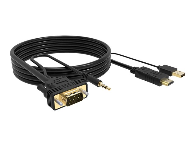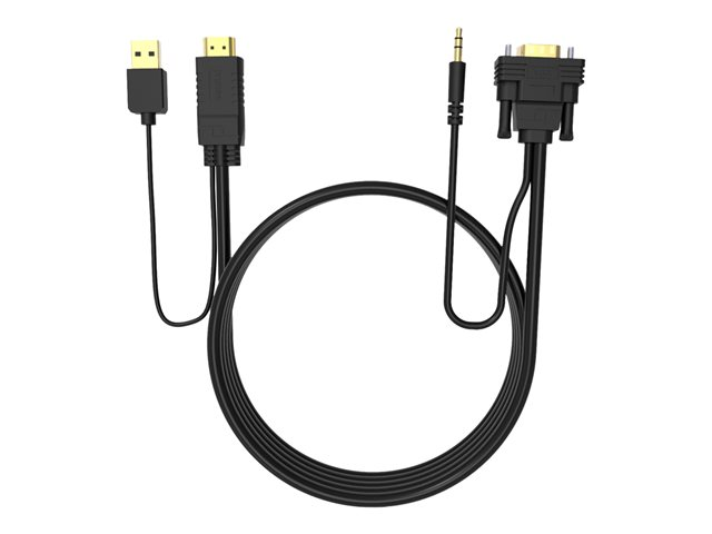 The Vision Techconnect is a versatile video/audio cable that enhances your multimedia experience. It supports a maximum output resolution of 1920 x 1080 and a refresh rate of 60 Hz, ensuring clear and smooth visuals. The adapter's gold-plated connectors provide a reliable connection. It is designed for convenience, featuring a USB power option. The stereo audio output ensures immersive sound. Its compatibility with HDMI, VGA, audio, and USB interfaces makes it a universal solution for connecting a wide range of devices. Ease of use is emphasized with its Plug-and-Play compliance, requiring no additional software or drivers for setup.