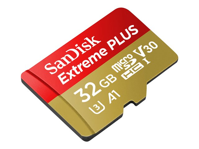 SanDisk Extreme PLUS - Flashminnekort (microSDHC til SD-adapter inkludert) - 32 GB - A1 / Video Class V30 / UHS-I U3 - microSDHC UHS-I
