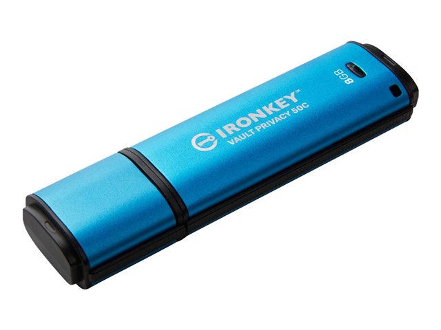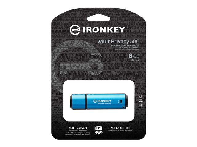 Kingston IronKey Vault Privacy 50 series are premium USB Type-A and USB Type-C drives that provide enterprise-grade security with FIPS 197 certified AES 256-bit hardware-encryption in XTS mode, including safeguards against BadUSB with digitally-signed firmware and against Brute Force password attacks. VP50 has been Penetration Tested (Pen Tested) for enterprise-grade security. Because it is encrypted storage under the user's physical control, VP50 series are superior to using the Internet and Cloud services to safeguard data.