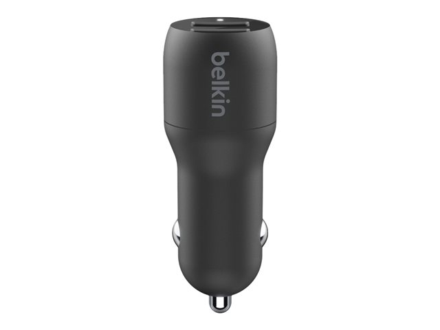 Belkin BoostCharge Dual Charger - Bilstrømadapter - 24 watt - 4.8 A - 2 utgangskontakter (USB) - på kabel: USB-C - svart