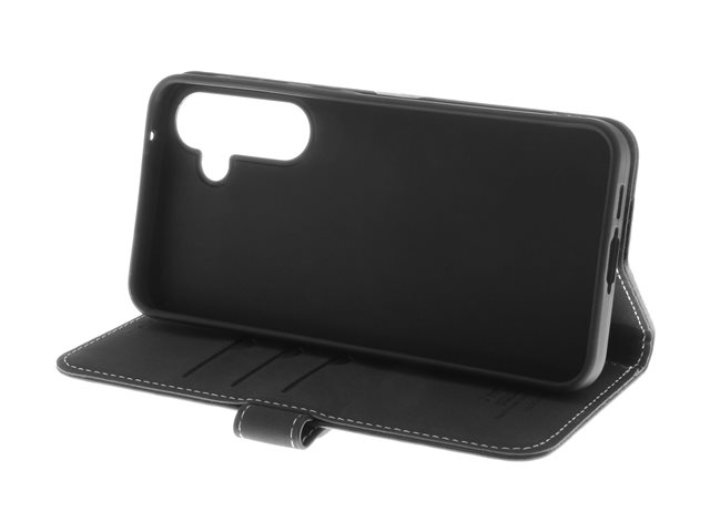 Insmat Exclusive - Lommebok for mobiltelefon - ekte skinn, termoplastisk polyuretan (TPU) holder, bomullssting, kartong+papir+aluminiumsfolie - svart - for Samsung Galaxy S24 FE