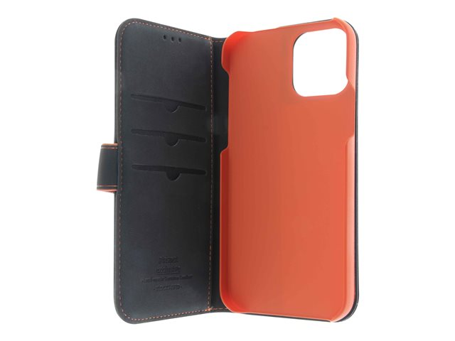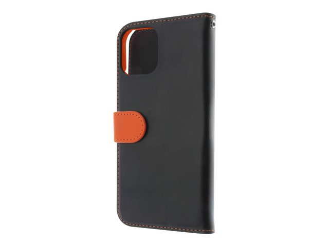 Insmat Exclusive - Lommebok for mobiltelefon - lær, kartong+papir+aluminiumsfolie - svart / oransje - for Apple iPhone 11