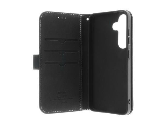 Insmat Exclusive - Lommebok for mobiltelefon - lær, kartong+papir+aluminiumsfolie, termoplastisk polyuretan (TPU) holder, bomullssting - svart - for Samsung Galaxy S24