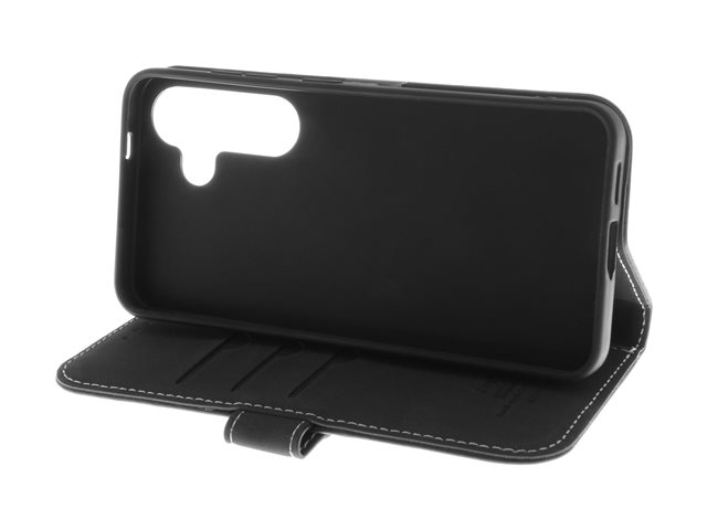 Insmat Exclusive - Lommebok for mobiltelefon - lær, kartong+papir+aluminiumsfolie, termoplastisk polyuretan (TPU) holder, bomullssting - svart - for Samsung Galaxy S24 650-3219