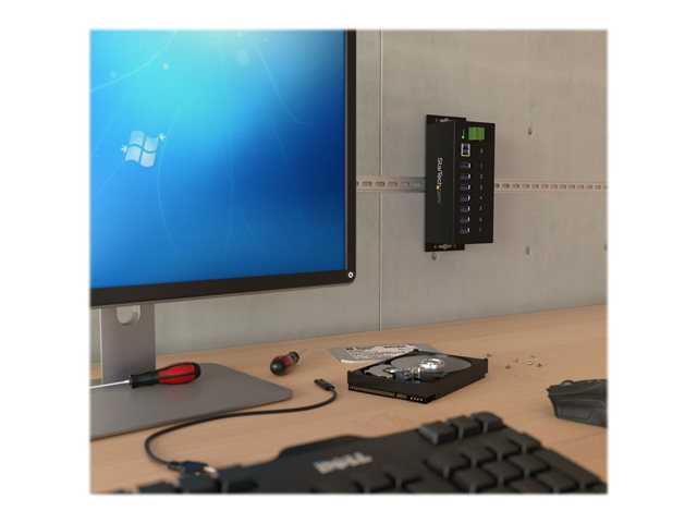 StarTech.com 7-Port USB 3.0 Hub - Metal Industrial USB-A Hub with ESD Protection & 350W Surge Protection - Din Rail, Wall or Desk Mountable - TAA Compliant USB Expander Hub (ST7300USBME) - Hub - 7 x SuperSpeed USB 3.0 - DIN-skinnemonterbar, veggmonterbar - DC-strøm - for P/N: ITB20D3250, USB312SAT3CB, USB315CB2M, USBLT1MWS, USBLT2MBR, USBLTM1MBK, USBLTM1MWH ST7300USBME