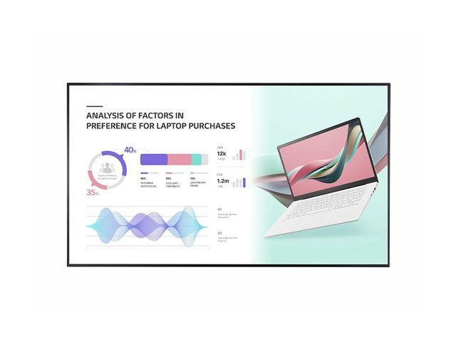 Experience clarity and color with the LG 86UH5J-H, an 86-inch LED-backlit LCD flat panel display designed for digital signage. This display offers a 4K UHD resolution and supports over 1 billion colors, ensuring vivid visuals for your content. Certified for 24/7 continuous operation, it's built to deliver your message around the clock. The display is not just about stunning visuals; it's also engineered for durability with an IP5X dustproof rating and an anti-glare coating, making it suitable for various public environments. Connectivity is a breeze, thanks to its multiple HDMI and DisplayPort inputs, along with LAN and Wi-Fi capabilities, allowing for easy integration into your existing network. Additionally, it supports integrated content management systems and is compatible with LG's SuperSign software, offering a seamless content management experience. Whether it's for retail, hospitality, or corporate communication, the LG 86UH5J-H brings your digital signage to life.