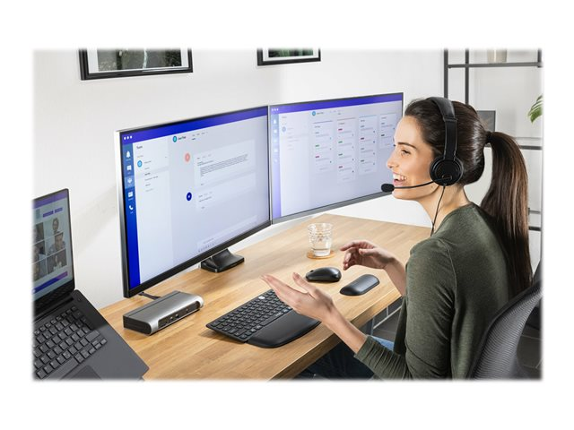 The SD5600T Thunderbolt 3 and USB-C Dual 4K Hybrid Docking Station - 100W PD - Win/Mac is the ultimate docking station for maximum productivity and compatibility. Features include universal compatibility, the flexibility to select between HDMI 2.0 and DP 1.2, horizontal or vertical placement options, built-in SD and Micro SD card readers, seven USB ports (two with charging), one Gigabit Ethernet port and one audio combo jack.