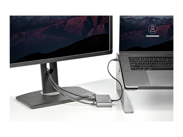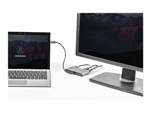 This certified Thunderbolt 3 docking station is a compact mini dock, delivering essential connections for productivity. The bus-powered dock connects dual 4K HDMI displays, Gigabit Ethernet, and two USB-A (USB 3.2/2.0) ports and for flexible set up, the attached Thunderbolt 3 cable has an extended length of 11 in. / 28 cm.
