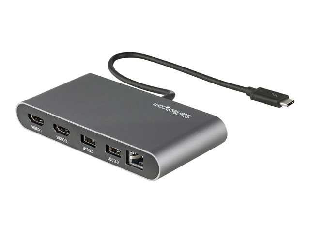 StarTech.com Thunderbolt 3 Mini Dock - Portable Dual Monitor w/HDMI 4K 60Hz - 2X USB-A Hub (3.2/2.0), GbE - 28cm Cable - TB3 Multiport Adapter - Mac/Windows - Upgraded Version of TB3DKM2HD (TB3DKMHDL) - Dokkingstasjon - Thunderbolt 3 - 2 x HDMI - 1GbE TB3DKM2HDL
