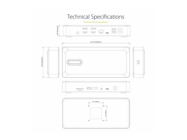 The StarTech.com Thunderbolt 4 Multi-Display Docking Station is a powerhouse of connectivity and performance, designed to meet the needs of professionals. With the ability to support quad, triple, or dual monitor setups through 2x HDMI and 2x DisplayPort interfaces, it offers flexibility in creating an extensive visual workspace. The inclusion of a 7x USB Hub, featuring a mix of USB 3.2 Gen 2 and USB-A 2.0 ports, provides comprehensive connectivity options for all your peripherals, ensuring seamless data transfer and multitasking capabilities.