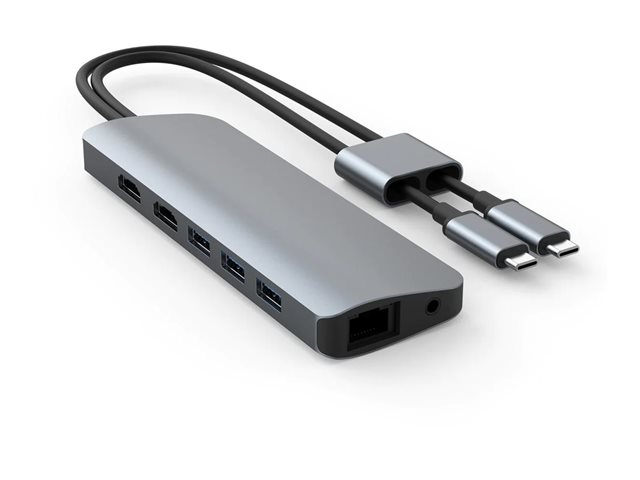 HyperDrive VIPER 10-in-2 Hub - Dokkingstasjon - USB-C - 2 x HDMI - 1GbE - for Apple 10.9-inch iPad Air (4th generation); 11-inch iPad Pro (1st generation, 2nd gen, 3rd gen); 12.9-inch iPad Pro (3rd generation, 4th generation, 5th generation); MacBook Air (Late 2018, Late 2020); MacBook Pro (Early 2020, Late 2016, Late 2019, Late 2020, Mid 2017, Mid 2018, Mid 2019) HD392-GRAY