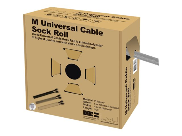 Multibrackets M Universal Cable Sock Roll 40 mm x 50 m - Kabelordner - sølv
