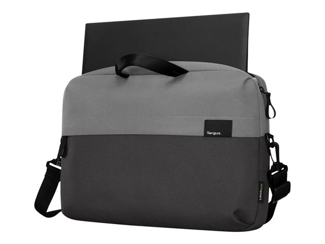 Functional and eco-friendly, the Targus 16" Sagano EcoSmart Slipcase features a padded main compartment that shields your laptop from everyday bumps and scratches. Slimmer than a briefcase and roomier than a sleeve, its large front pocket keeps accessories handy while its removable shoulder strap and soft grip handles make for an ultra-easy carry.